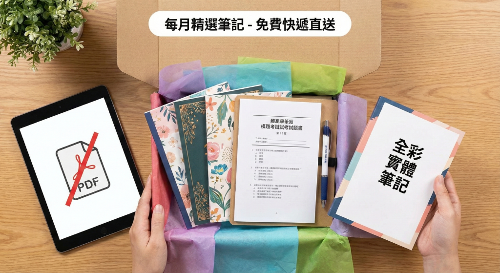 拒絕只給 PDF!我們堅持每月編製精美全彩實體筆記與模擬試卷,免費快遞直送你家,讓你溫習更有效率。