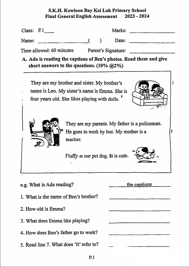 如何免費下載這份試卷(聖公會九龍灣基樂小學 23-24 一年級 上學期 英國語文科 測驗)?